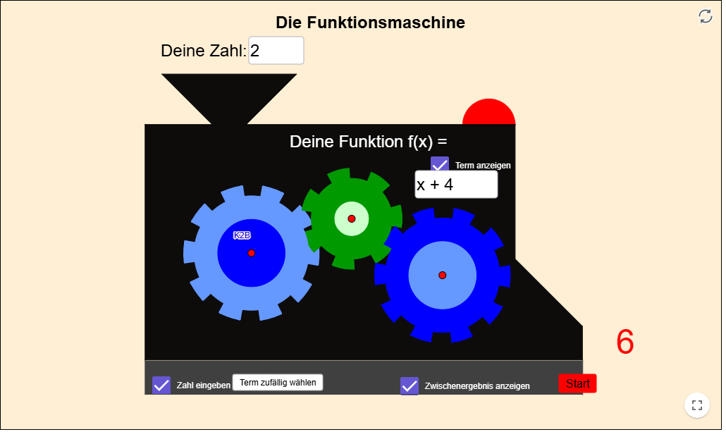 Als Ergebnis spuckt die Maschine also die Zahl 6