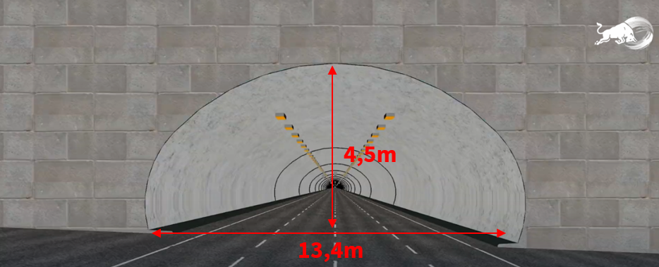 Der Tunnel ist ca. 13,4m breit und 4,5m hoch.