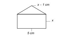 Rechteck: Breite 5 cm, Höhe x cm. Dreieck: Grundseite 5 cm, Höhe x − 1 cm.
