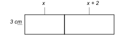 Linke Fläche: Länge x, Breite 3 cm. Rechte Fläche: Länge x + 2, Breite 3 cm.