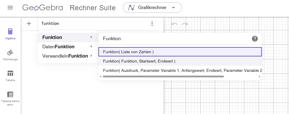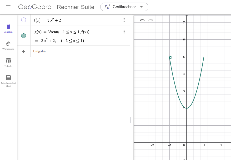 Funktion(f, -1, 1) liefert eine Funktion, die im Intervall [-1,1] gleich f ist.