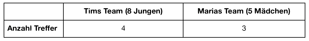 Wer hat nun gewonnen? Warum reicht es nicht, nur die Anzahl der Treffer miteinander zu vergleichen? Wie kann man die Anzahl der Treffer besser miteinander vergleichen?