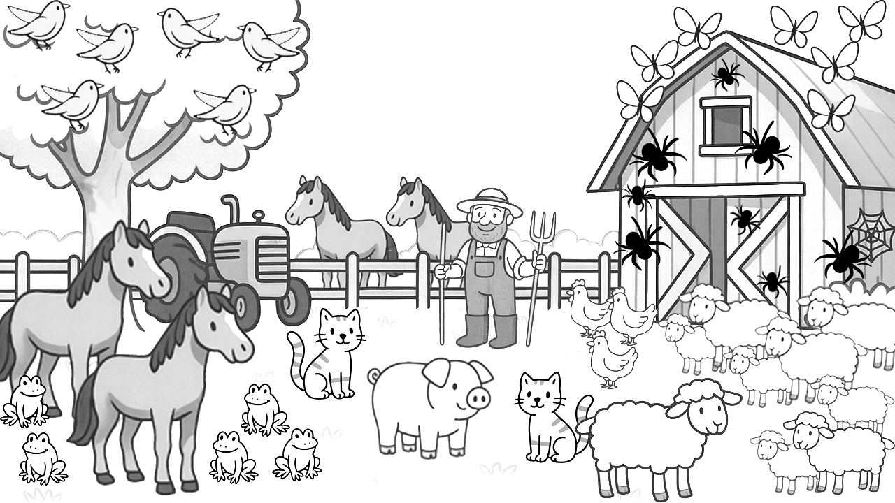 Höre das Lied noch einmal an. Male die Tiere auf dem Bild in der richtigen Farbe an.
