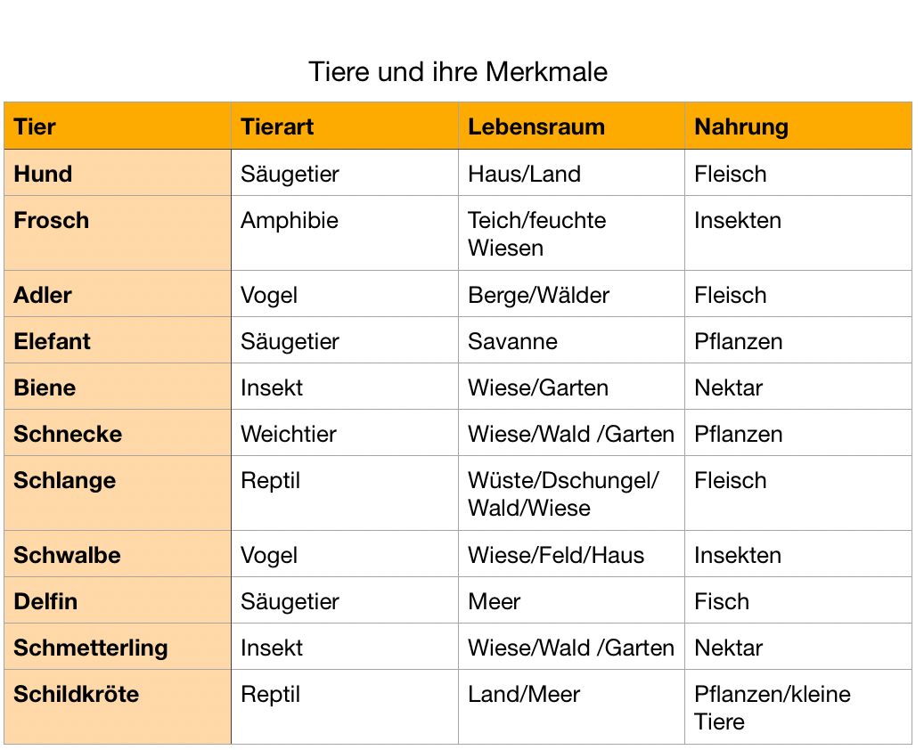 Nun bist du an der Reihe. Kannst du die Fragen zu der Tabelle richtig beantworten? Antworte in ganzen Sätzen!