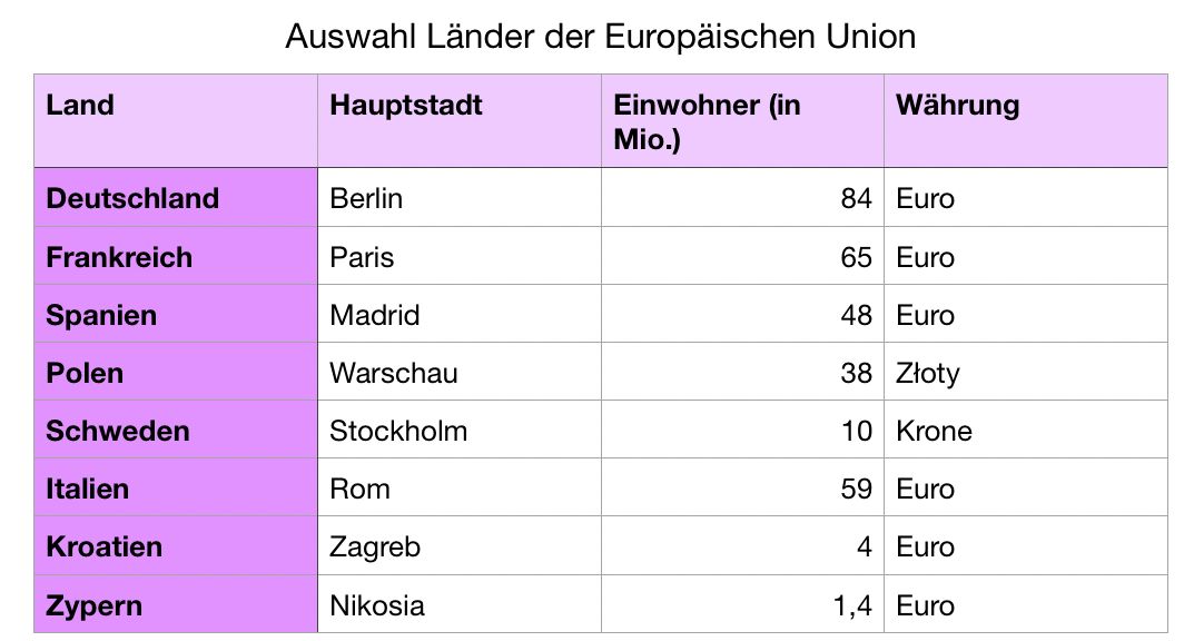 Schaue dir die Tabelle an und fülle den Lückentext auf der nächsten Seite aus.