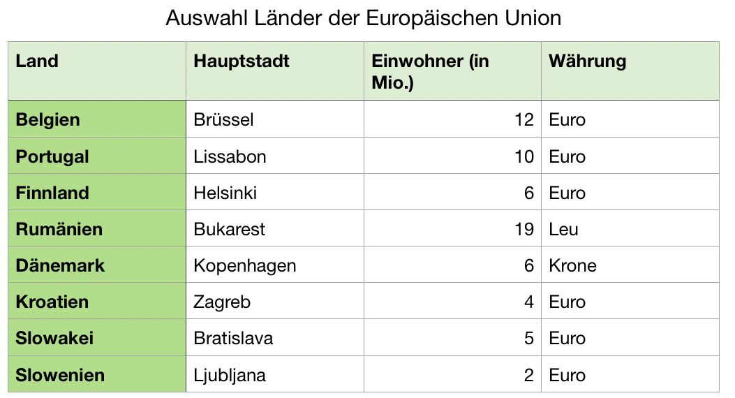 Schaue dir die Tabelle an und fülle den Lückentext auf der nächsten Seite aus.