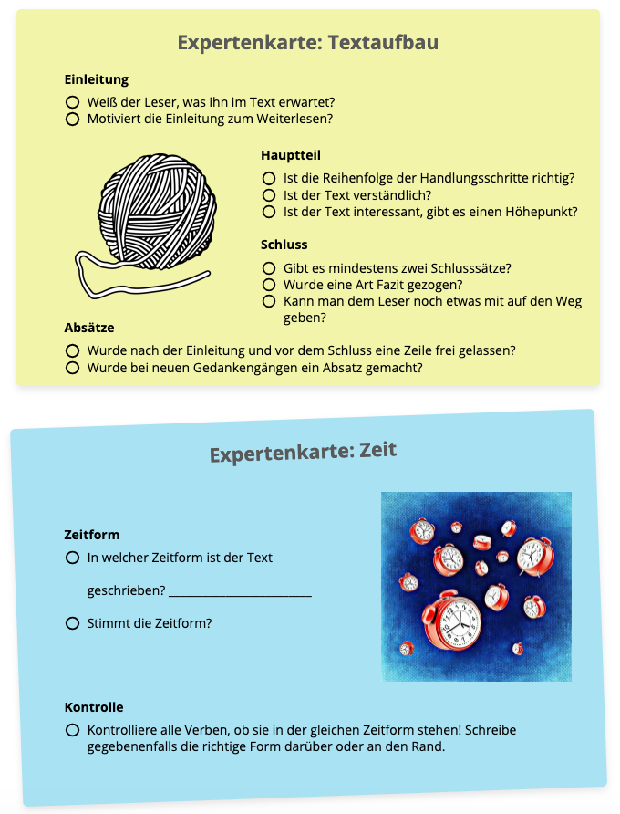6. Jeder Experte liest noch einmal leise den Text durch und formuliert Tipps.