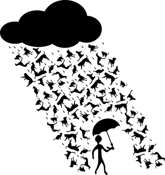 Bedeutung: Es regnet sehr stark (es regnet natürlich keine echten Tiere).